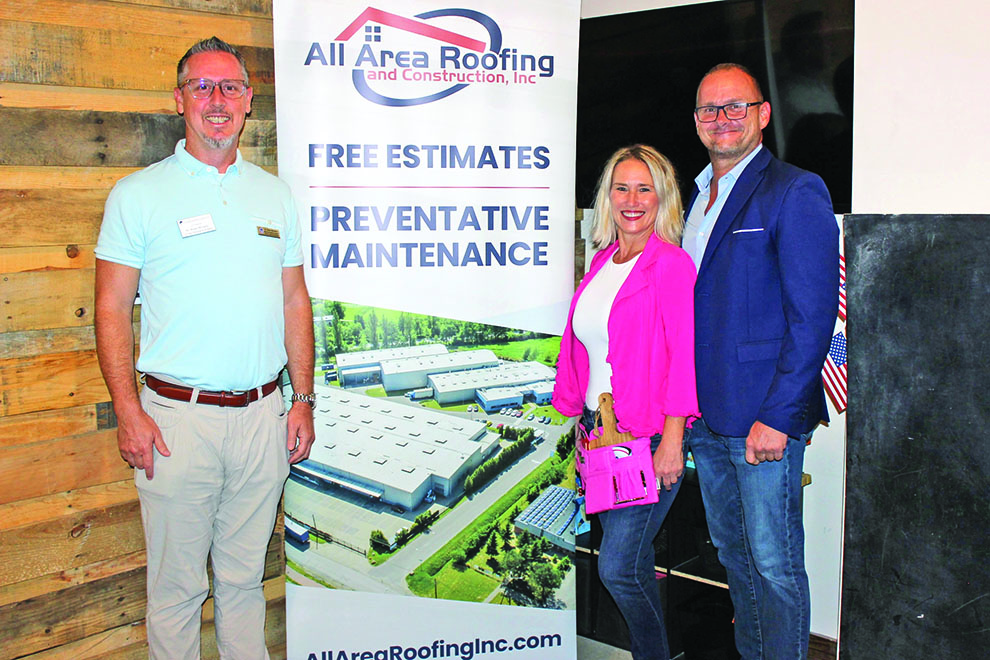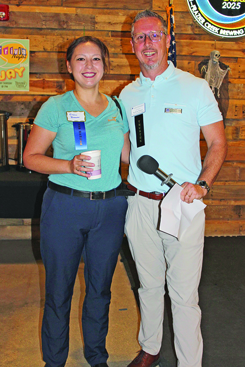 During his first official duty as Stuart/Martin County Chamber Chairman, Trustee Dr. Brian Moriarty, Loving Chiropractic of Stuart, welcomed new member Erica Brewer, DoodyCalls of the Treasure Coast, to the Oct. 7 Business B4 Breakfast sponsored by All Area Roofing & Construction at Frazier Creek Brewing & Distilling Co.