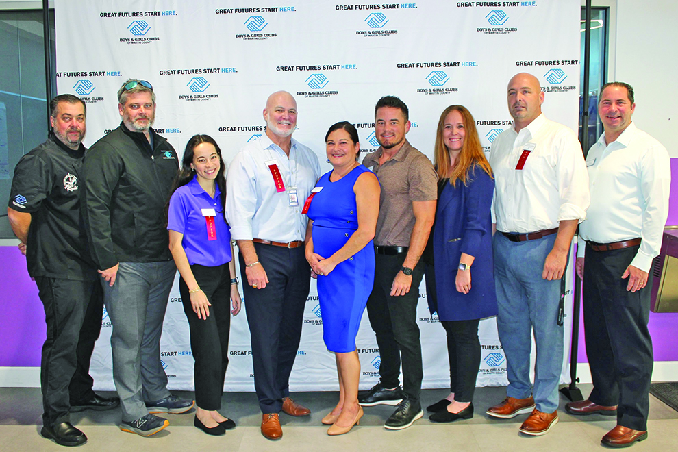 Stuart/Martin County Chamber members were in awe of the expansive new Stuart campus of Boys & Girls Clubs of Martin County during the Sept. 30 Business B4 Breakfast they hosted and sponsored. Members were treated to a tour of the full-functioning classrooms for skilled trades, including culinary arts, fashion, construction, plumbing, electrical, robotics, drone operation and more. Representing Boys & Girls Clubs were (left to right) Chef Dan Bettencourt, CEO Keith Fletcher, Brianna Page, Scott Crumpler, Meg Shirey, Ian Crowley, Leigh Anne Dees and Dr. Tim Aitken, with Chamber Chairman Dan Hulen, Fifth Third Bank Merchant Services/Worldpay.