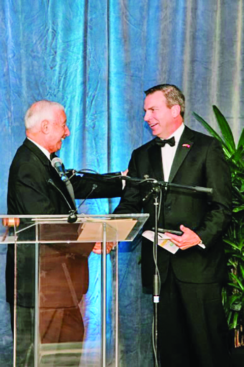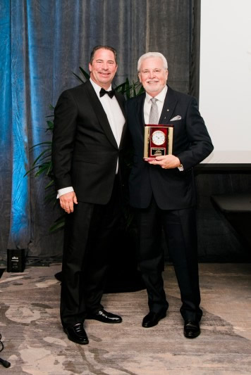 Chamber Chairman Dan Hulen, Fifth Third Bank Merchant Services/Worldpay, presented William Corbin, executive director of the Business Development Board of Martin County, for his commitment to enhancing the area’s economy, during the Installation Gala held on Sept. 27 at Marriott Hutchinson Island Beach Resort. Photo by Fred Kirkhart-Stuart Photography Company