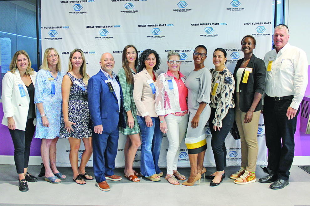 New and prospective Stuart/Martin County Chamber members introduced their businesses and networked with fellow members during the Sept. 30 Business B4 Breakfast, hosted and sponsored by Boys & Girls Clubs of Martin County. Shown are (left to right) new members Megan Santana, Quantum House; Lisa Teetor, Nightingale Private Care; Tiffany Talarico, Bray Realty Advisors; Paul Alonge, Fifth Third Bank; Sarah Ferguson, TableTop Linen Rental; Sonia Wheelock, Conecta Live; Michele Adler, Michele Adler Coaching; and prospective members Chantale Milford, Danielle Garaicoechea and Kayla Mobley, Elevated U; and Brian Langworthy, Helios Home Health.
