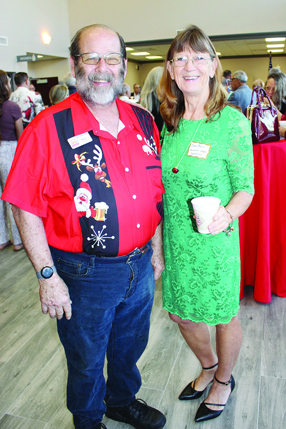 Feeling the holiday spirit at the Stuart/ Martin County Chamber’s Dec. 16 Business B4 Breakfast at The Grace Place were Mark Kovalsky, BBQ Island Style, and the newest Chamber Ambassador JeanMarie McCormack, Emerald Ledger Solutions.