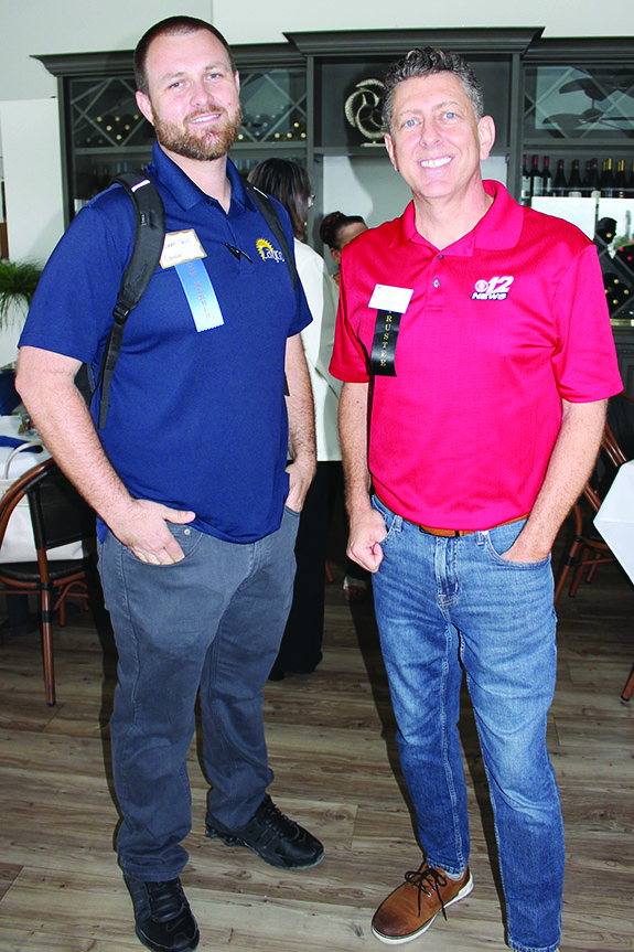 Stuart/Martin County Chamber Director/ Trustee Josh Brown, CBS 12 News (right), welcomed new member Sam Hill, Cayco Landscaping, to the chamber’s January Business at Lunch sponsored by the Village of Indiantown at Two Georges Dockside Grill.