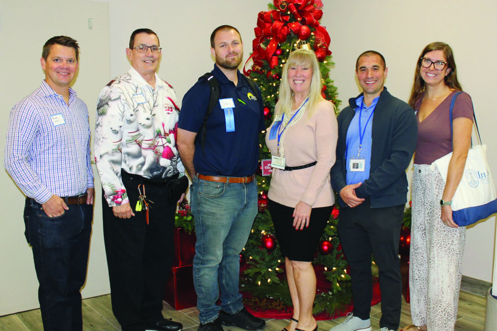 New Stuart/Martin County Chamber members enjoyed the friendly comradery and holiday spirit at the Dec. 16 Business B4 Breakfast hosted and sponsored by The Grace Place. Shown are (left to right) Michael Lafferty, America’s Office Source; Keith Griffin, Southeast Merchant Solutions; Sam Hill, Cayco Landscape Services; Shirley Saunier and Bryan Deering, Remedy Therapy Center/Eating Disorders; and Jessica Jacobs, In Joy Wellness.