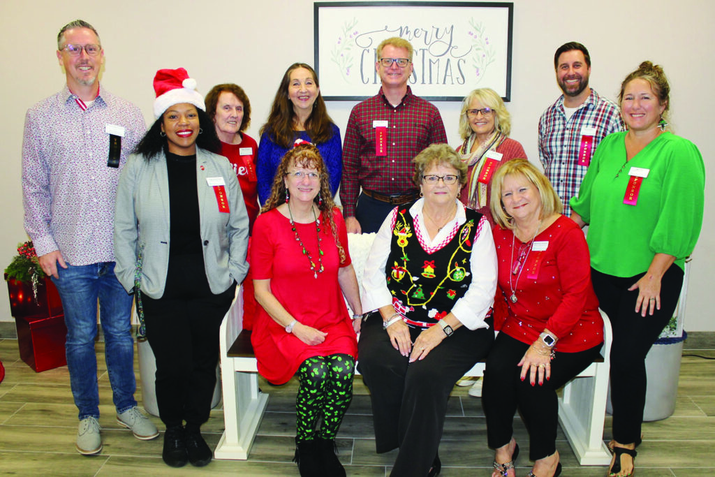 Filling the air with the Christmas spirit, The Grace Place management team welcomed Stuart/Martin County Chamber members as they sponsored and hosted the Dec. 16 Business B4 Breakfast in their beautifully decorated Celebration Center. Pastor Steve Bray promoted their upcoming holiday events, including their three Christmas Eve services. Shown are (left to right) Chamber Chairman/Trustee Dr. Brian Moriarty, Loving Chiropractic of Stuart; Suzanne Adams; Karon Addison; Stephanie Johnston; Juaquanda Ross; Janet Dukelow; Peggy Miller; Pastor Steve Bray; Lisa Emig; Daniel Sutton; and Mya Gill.