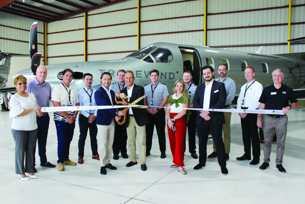 Tradewind Aviation Founders Eric and David Zipkin were joined by their team and the Stuart/Martin County Chamber of Commerce during a ribbon cutting ceremony celebrating newly launched scheduled service from Witham Field in Stuart to the Bahamas. Pictured left to right, front: Chamber Ambassador Margaret Winfield; David Zipkin, co-founder and CCO, Tradewind Aviation; Eric Zipkin co-founder and CEO, Tradewind Aviation; Jen Lozada, vice president of revenue, Tradewind Aviation; Anthony Karpinski Jr., head of Southeast development, Tradewind Aviation; Chamber Ambassador/Trustee Jon Ryan. Back: District 5 Commissioner, Vice Chairman Edward V. Ciampi; Tradewind Aviation pilots/crew Enzo Aponte Viera, Bruno Villasenor, Ethan Browne, Brendan Wixson, Logan Murphy; Ed Adduci, director of maintenance, Tradewind.