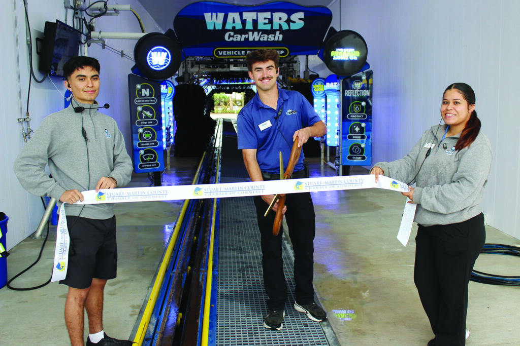 On Jan. 15, Samuel Sharkey, managing partner of Waters Car Wash, along with his associates Adrian Pardo and Maria Castro, cut the Stuart/Martin County Chamber ribbon on his new location at 5601 S.E. Federal Highway, Stuart, just south of Salerno Road.